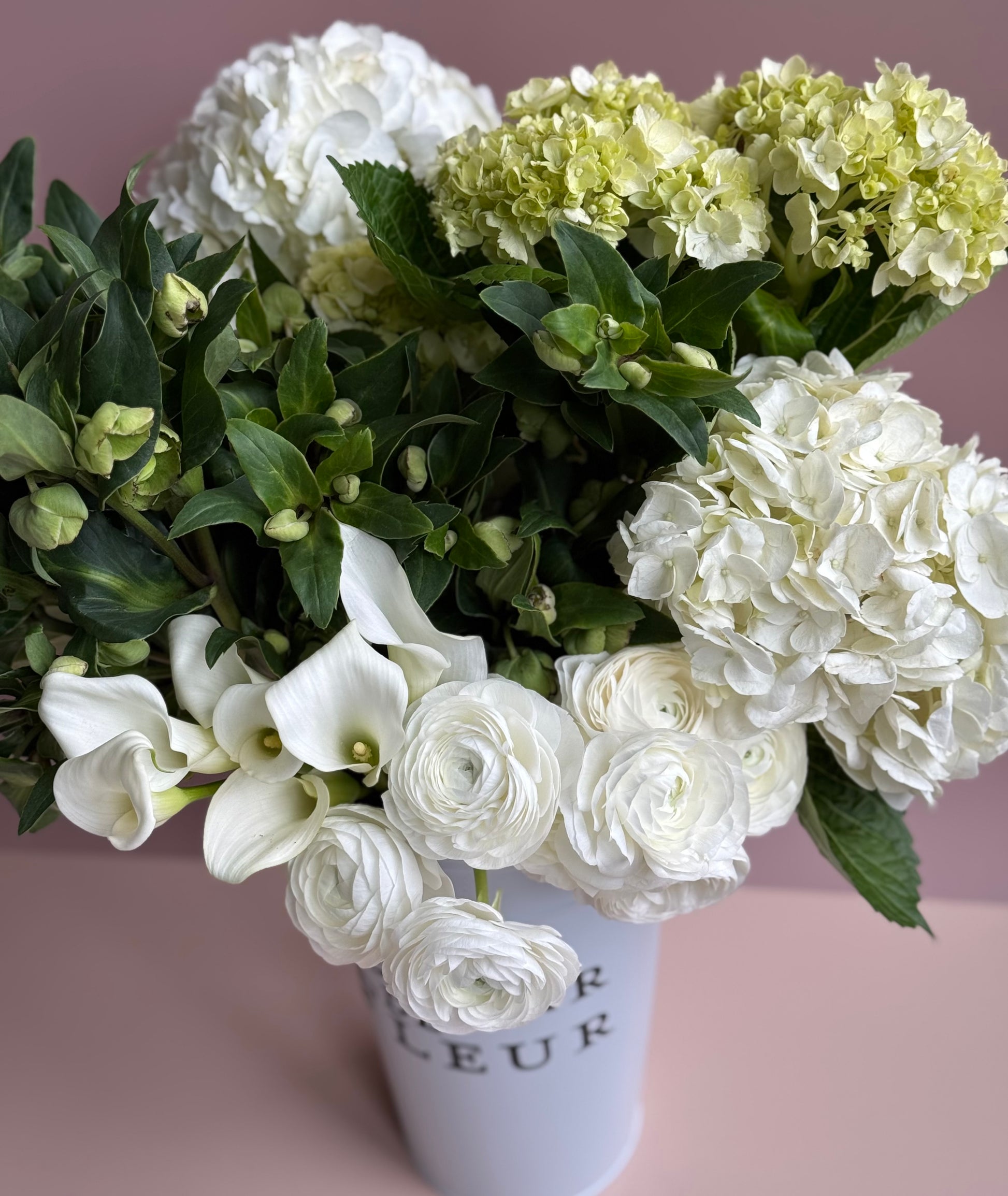 Receive a stunning new variation of the season’s best white and green flowers as often as each week. Our buckets feature the season's freshest florals, such as tulips, roses, ranunculus, anemone, hydrangea, hellebores & beyond sourced from all corners of the world. Select your size and frequency and receive a bucket of freshly cut flowers, ready to arrange.